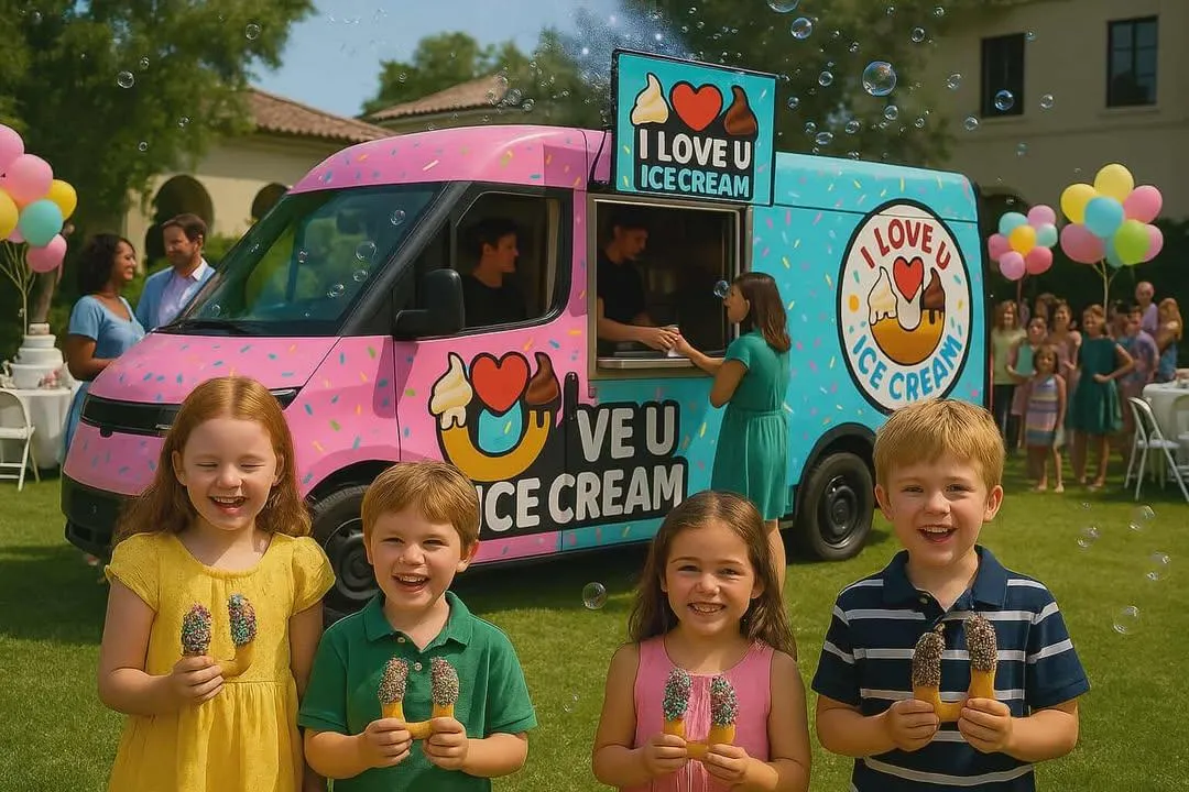 This is our event booking page for our mobile I Love U Ice cream truck — handcrafted happiness on wheels!